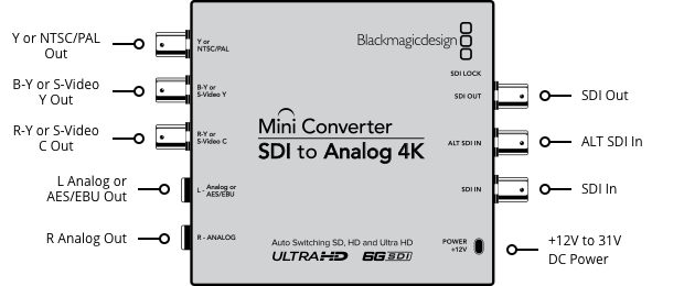 - 1 x SD, HD, 6G-SDI (BNC) továbbfűzésre