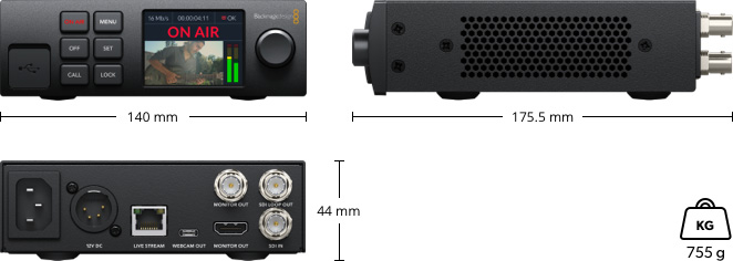 - 1 x 12G-SDI (BNC) embedded hang